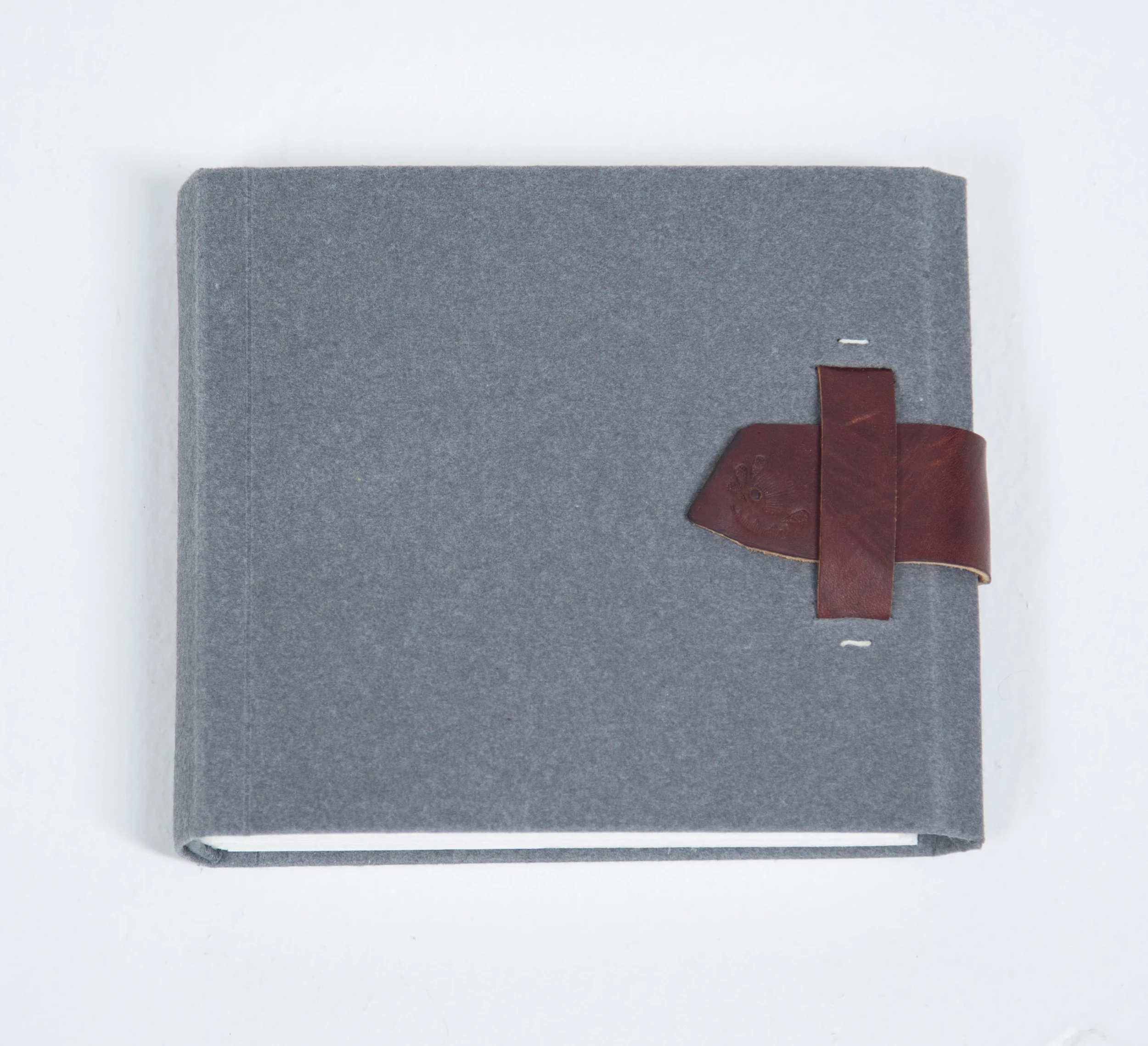 Round Back June 2014, Round back binding with leather closure, hand sewn and hand cut, 5.75 x 7 x 1.5"