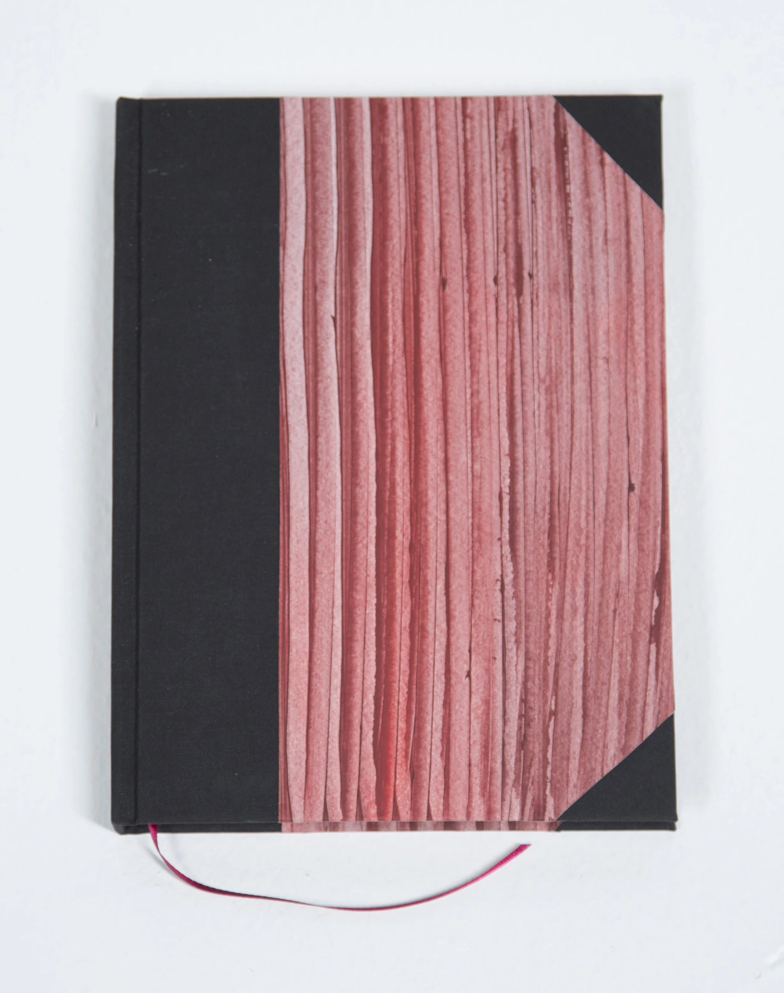 Ink journal May 2014, Flat back binding with hand decorated paper and hand sewn end-bands, 8.75 x 6.5 x 0.75"