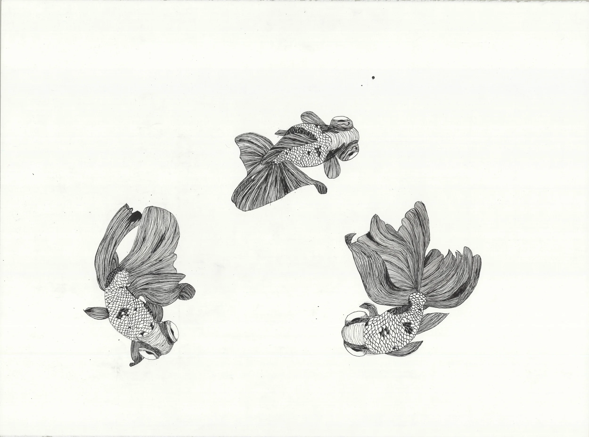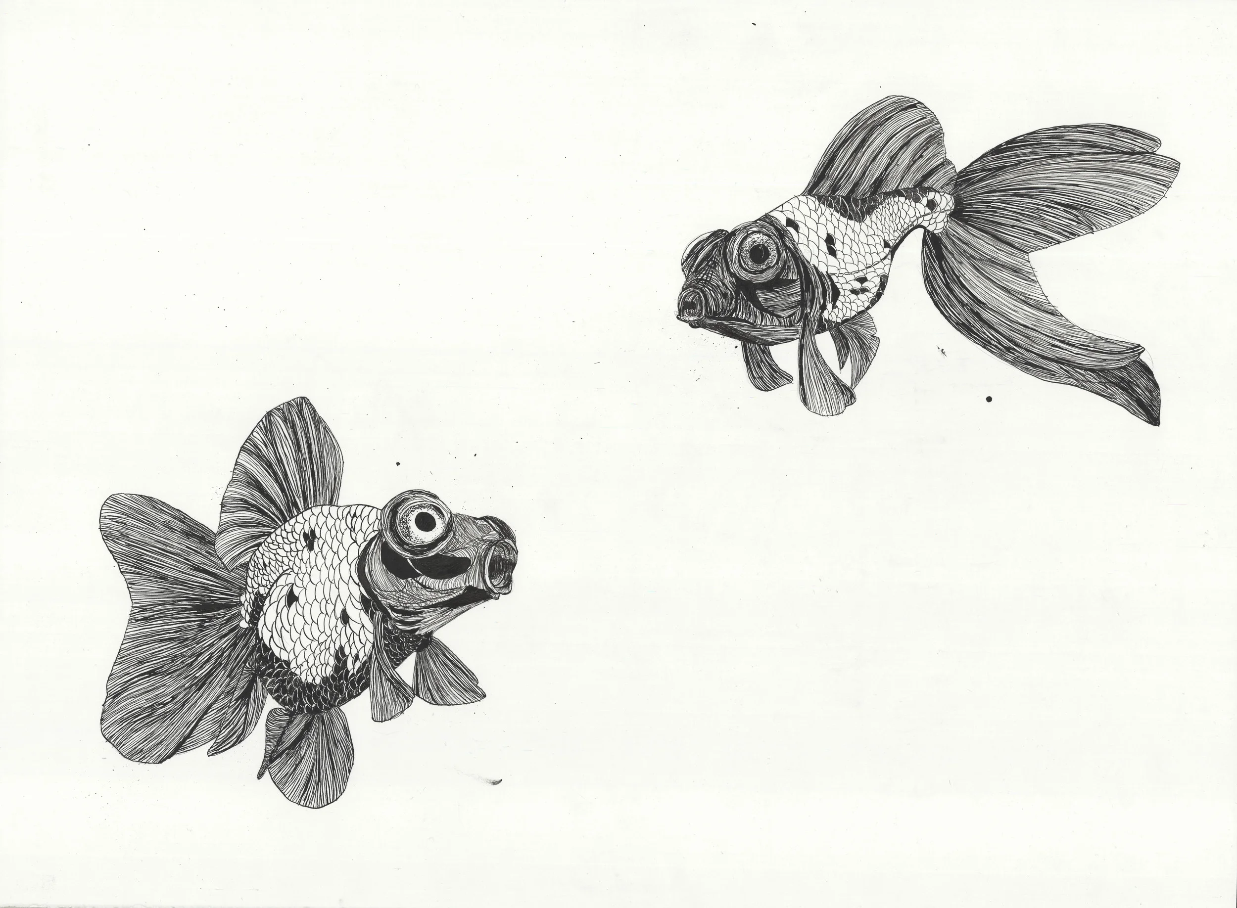 Fish Duel December 2013, India Ink on Paper, 22 x 30"