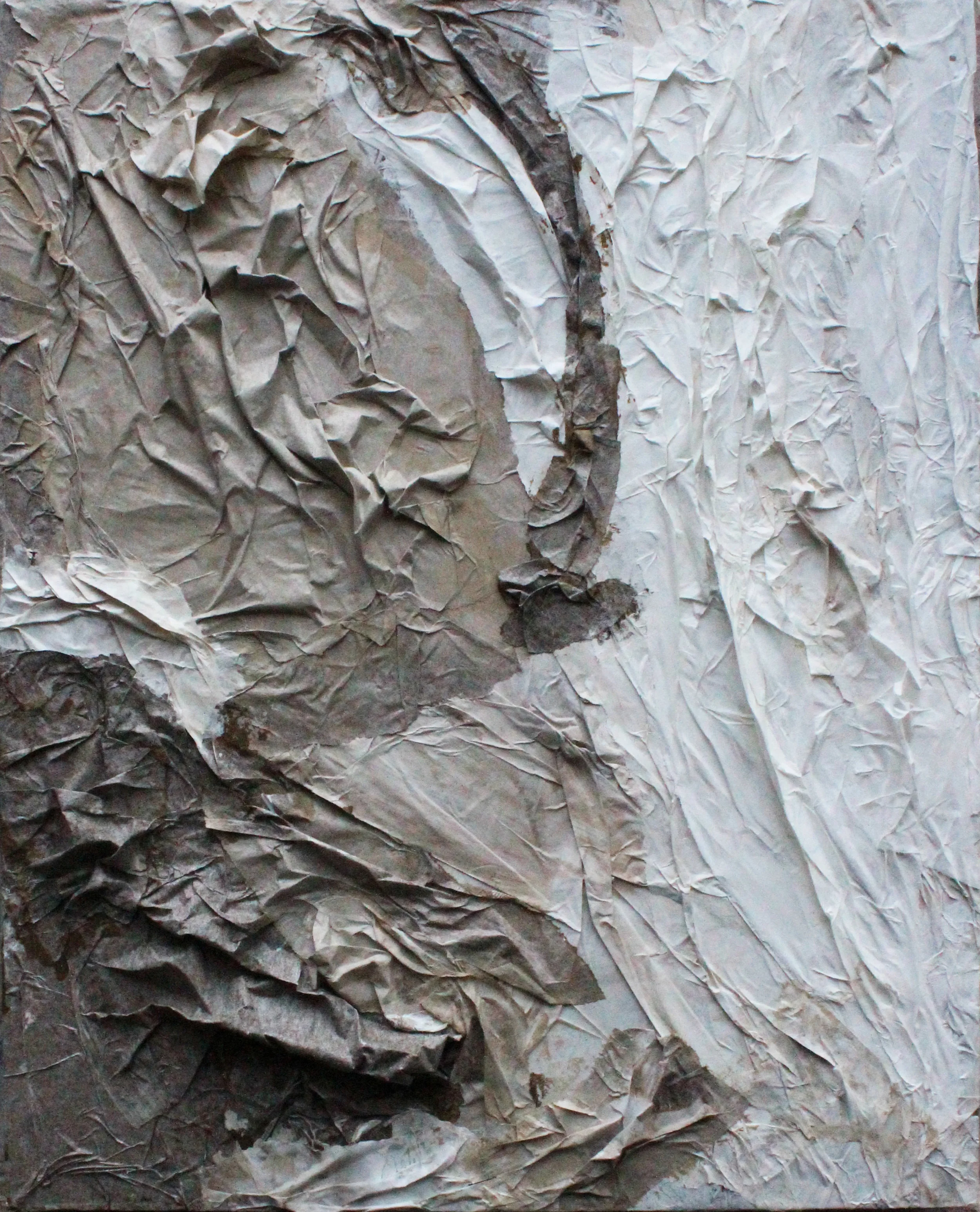 Terrain 1 February 2015, Acrylic and paper on wood panel, 10" x 8"